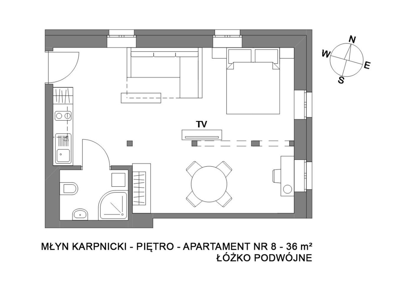 Apartament typu studio z widokiem na góry. This apartment includes 1 living room, 1 separate bedroom and 1 bathroom with a shower and a hairdryer. Guests will find a stovetop, a refrigerator, a dishwasher and kitchenware in the well-equipped kitchen. The apartment also features a barbecue. The apartment offers a flat-screen TV with satellite channels, a tea and coffee maker, a seating area, a dining area as well as garden views. The unit has 2 beds. Apartament - 4 osobowy. Powierzchnia pokoju ok.: 36 mkw. ;