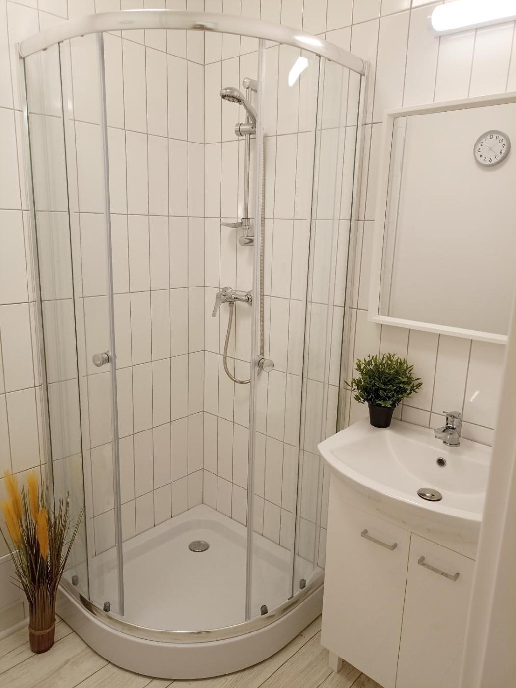 Apartament z 1 sypialnią. This apartment includes 1 bedroom, a kitchenette and 1 bathroom with a shower and a hairdryer. Guests can make meals in the kitchenette that is fitted with a stovetop, a refrigerator, kitchenware and a microwave. The apartment offers a flat-screen TV with streaming services, a wardrobe, an electric kettle, a carpeted floor as well as a quiet street view. The unit has 2 beds. Apartament - 2 osobowy. Powierzchnia pokoju ok.: 23 mkw.