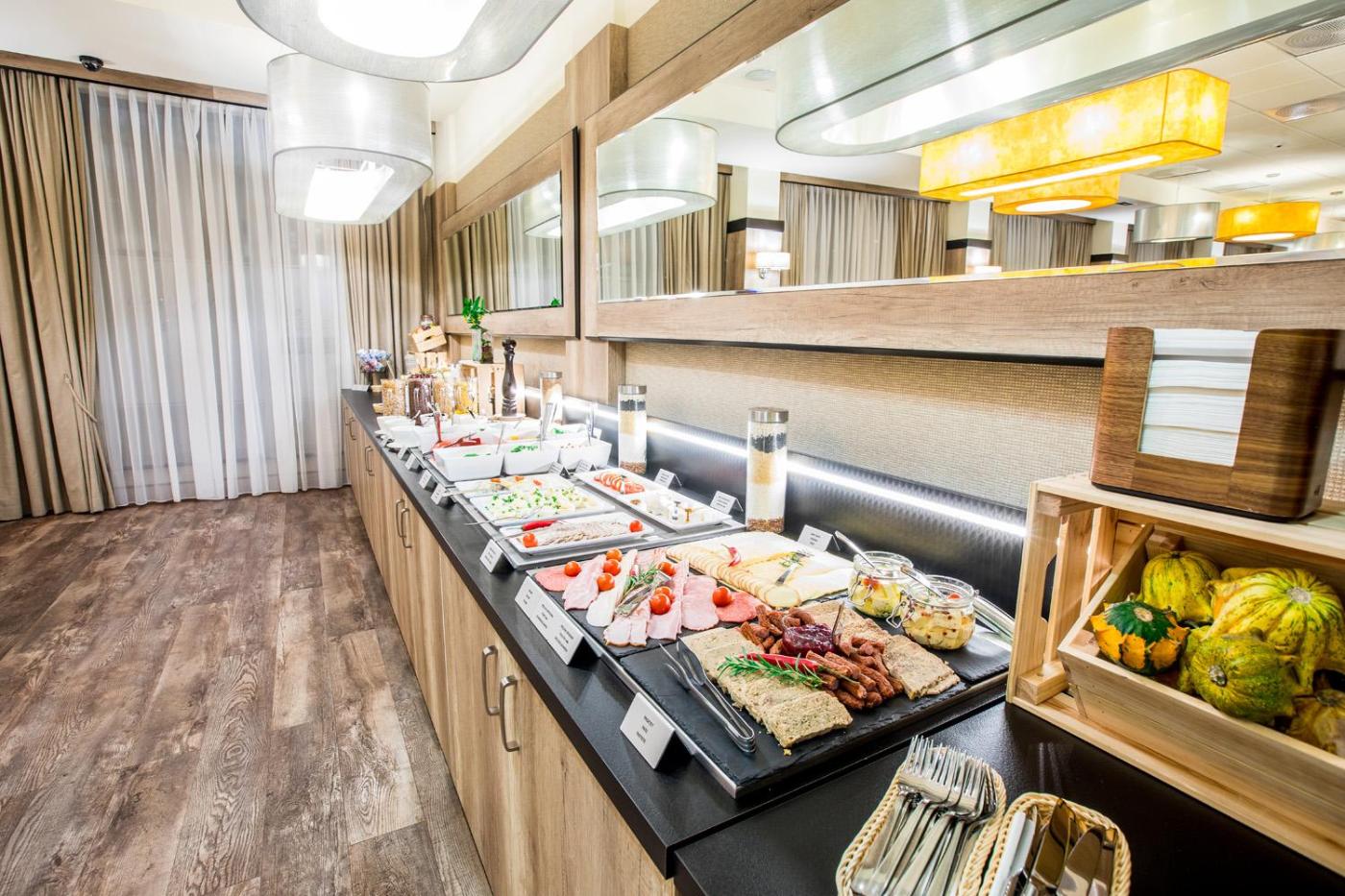 Codziennie rano serwowane jest urozmaicone śniadanie w formie bufetu, składające się z ponad 100 świeżych produktów i potraw przyrządzonych na bazie regionalnych składników. W restauracji Atmosfera można obserwować kucharzy przy pracy.